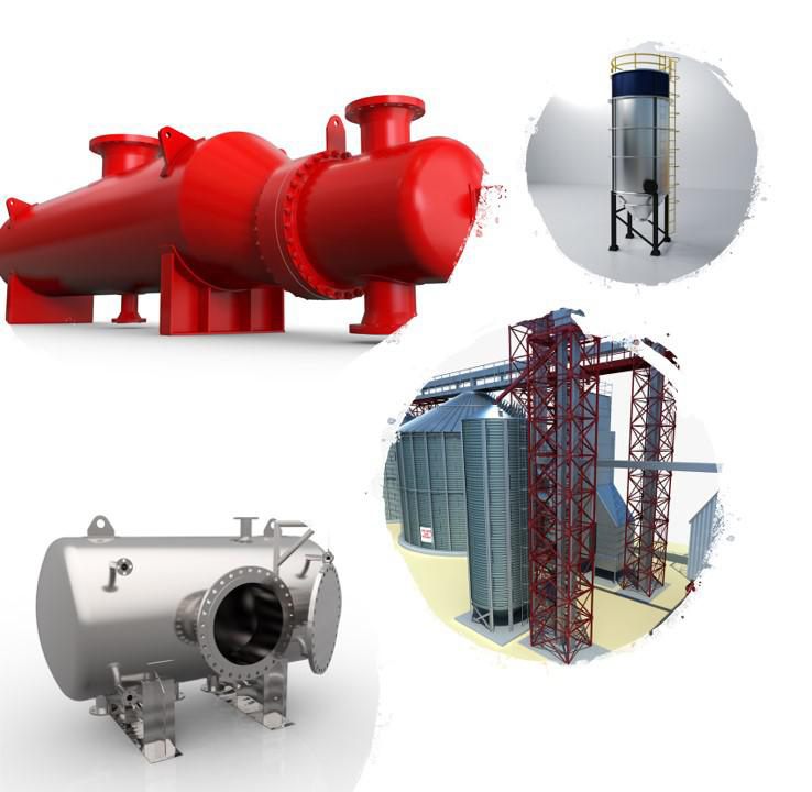 We support our clients for design and detailing of static equipments like Pressure vessels, Heat exchangers, Process towers, Cyclones, Steel Silos, Steel bins, Air receiver etc., For Pressure vessel design code we use ASME Section VIII Div.1 and IS 2825 and TEMA Class.